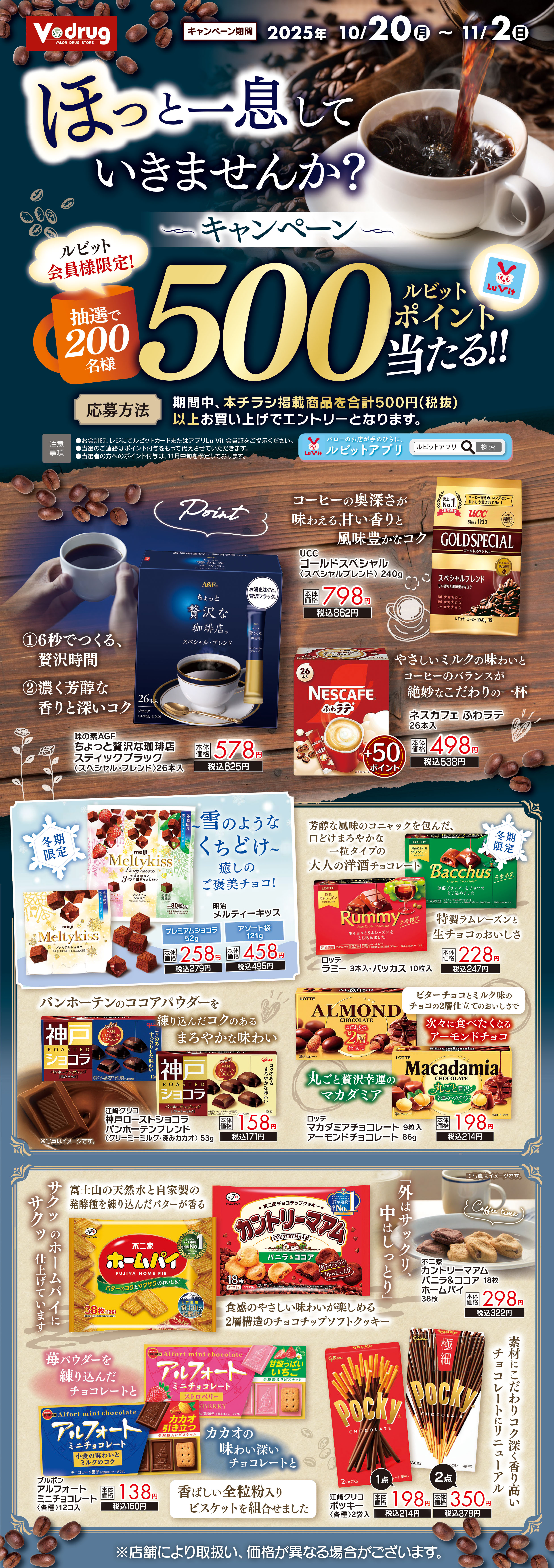 期間中、本チラシ掲載商品を500円(税抜)以上お買い上げでエントリーとなります。