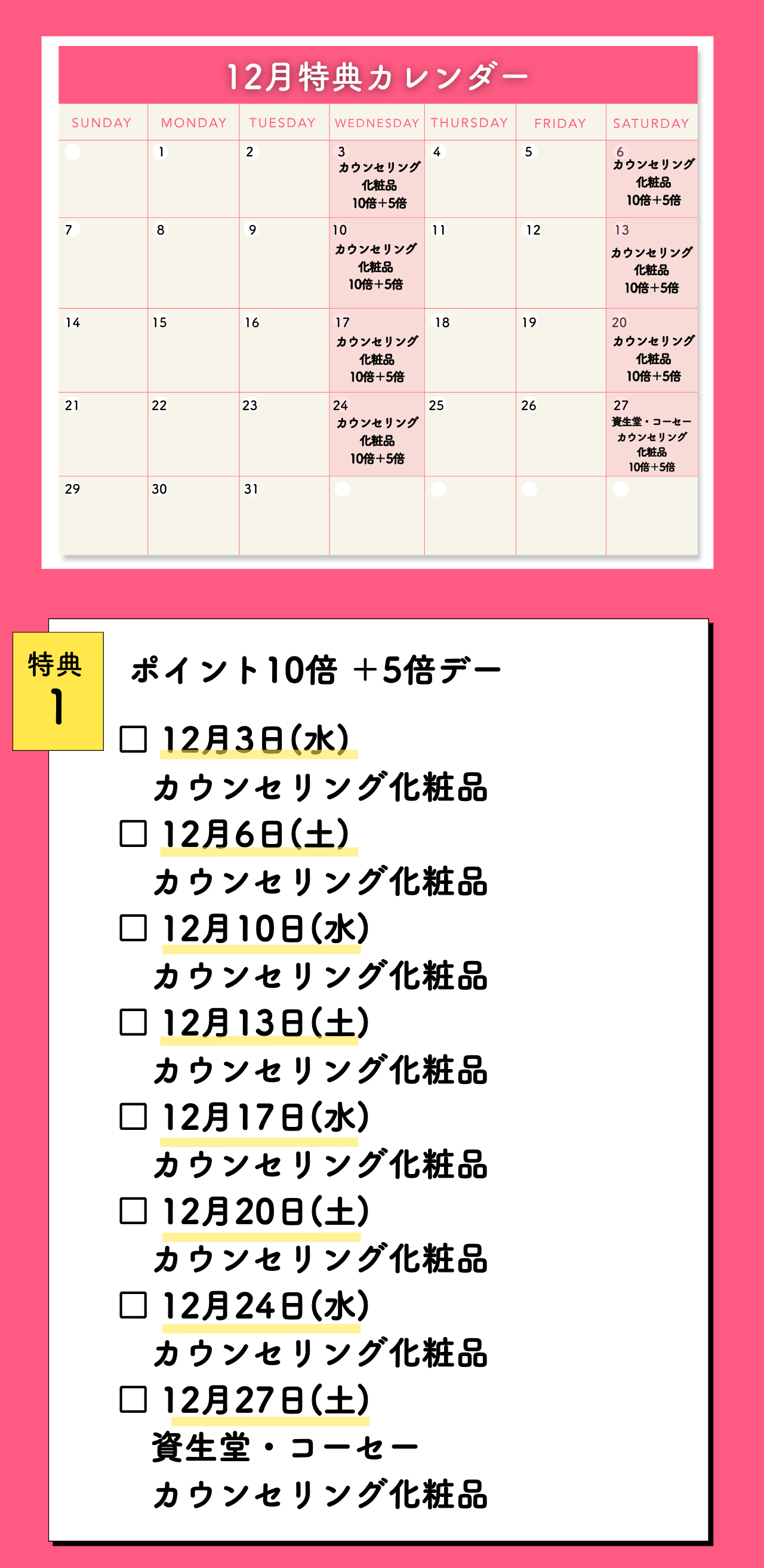 コスメ会員様には化粧品のお買物がお得になる特典をご用意しております。