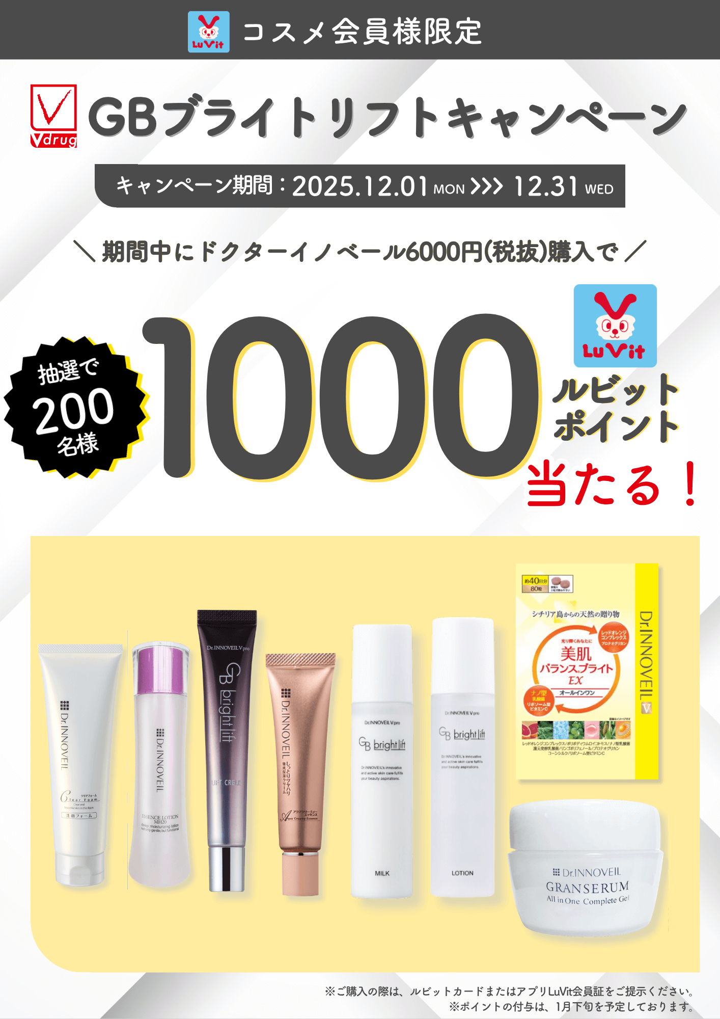 期間中にドクターイノベール商品を6,000円(税抜)以上ご購入いただいたコスメ会員様