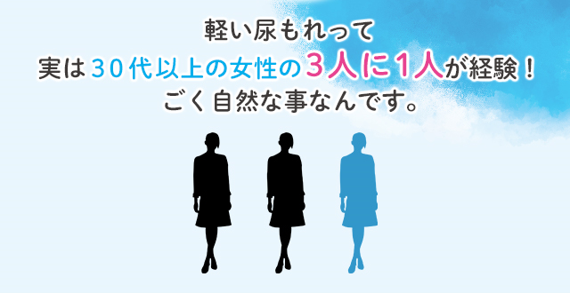 尿もれは年を取ったから経験する。というものでもなく、軽い尿漏れは、30代の女性では3人に1人以上が尿もれを経験しているという結果が出ております。