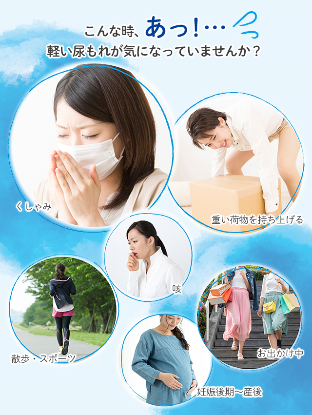 尿もれには種類があり、症状の程度も様々で、主に下記2タイプに分けられます。