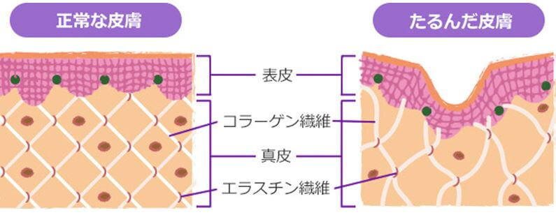 エストロゲンはコラーゲンやエラスチンの生成を促す役割があるが、加齢によって分泌量が減少していくため、肌のたるみの原因となる