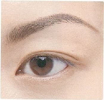 →アイシャドウのダークカラー黒目の上、中央が高くなるように置きます。