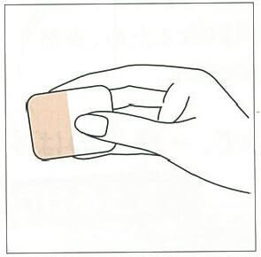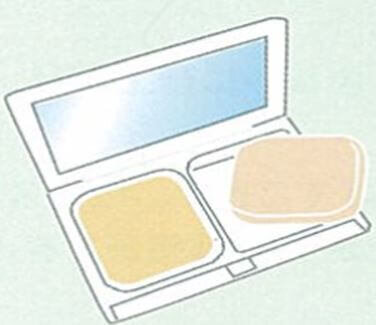 ③アイカラーチップの面に粉おしろいまたはパウダーファンデーションを取り、部分用ファンデーションの上に軽くたたきながら重ねて定着させることがポイントです。