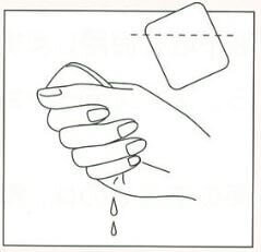 まんべんなく水を含ませ、スポンジの上から1/3を残し、ギュッと絞る