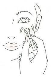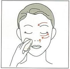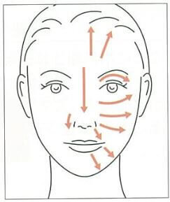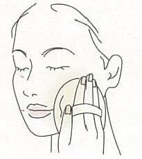 顔の中心から外側に向かって片方のほおからあごまでのばし、続けて額にものばす。顔の半分ずつ仕上げる。