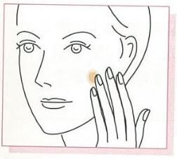 ファンデーションのあと、部分用ファンデーションを直接にきびの跡にのせ、指先でポンポンと軽くたたくようしにて、肌になじませます。