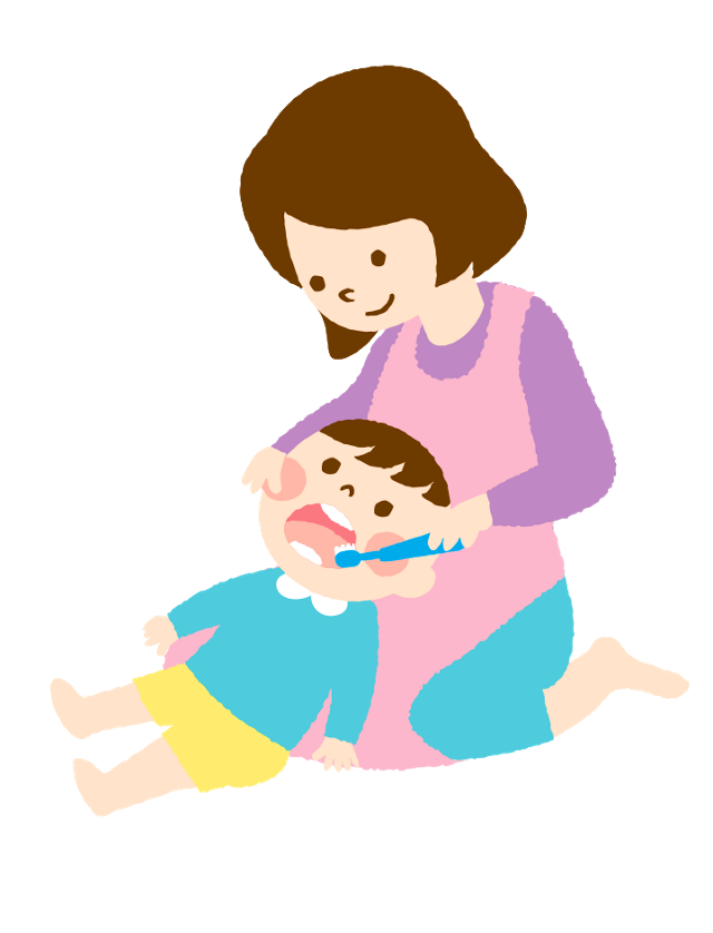 この時期、むし歯になりやすい前歯などを手早くみがき、後は、機嫌のいいときにしっかりみがきましょう。