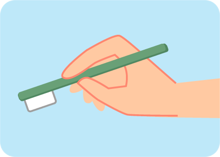 ハブラシは、ペンを持つように軽くにぎります。