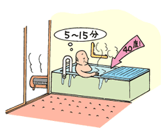 お年寄りの皮膚は、若い人に比べて温度を感じにくくなっています。特に熱すぎるお風呂は危険です。お湯の温度には充分注意しましょう。