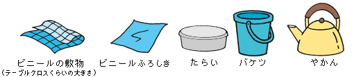 - 大きなビニール袋の中に入れ、口元を小さくたたみ、ガムテープでしっかり押さえます