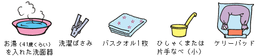 - お湯の温度、石けん・タオル・シャワー用いすなど事前に準備をすませておきましょう。