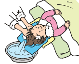 髪の汚れやにおい、頭のかゆみは、大変不快で気になるものです。少なくとも週1回は、髪を洗ってあげましょう。入浴時に洗髪するのが一番ですが、入浴できない時には、手浴や足浴と同じ感覚で手早く洗髪してあげれば、気分もスッキリします。
