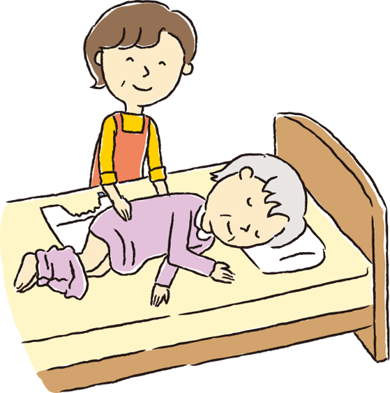 おむつかぶれの原因の一つとして挙げられる「おしりの蒸れ」はおむつの交換の頻度や商品を見直すことで改善する場合があります。おむつ商品には吸収量ごとにさまざまなサイズや種類があり、通気性を持たせたお肌に優しい商品もあります。その人に合ったおむつ選びも重要になります。また、就寝直前の飲食を控えめにすることも対策の一つです。