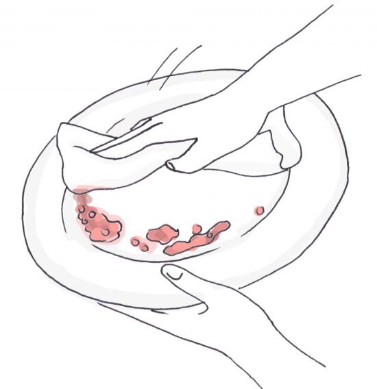 残菜を取り除き、軽く水で流したり、キッチンペーパーなどで拭きとりましょう。落としにくい卵や焦げつき、ごはん粒、高温のお湯でも落ちにくい口紅などの汚れは、あらかじめスポンジなどで落としておきましょう。