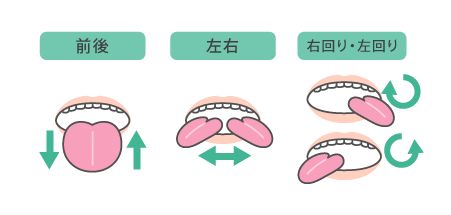 また、唾液は年齢を重ねると分泌されにくくなっていくものです。日頃から、図のように唾液腺をマッサージしたり、舌のストレッチで、唾液の分泌を促すといいでしょう。