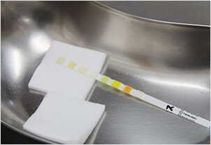 事前に採取した尿や便を渡します。膀胱や腎臓などの泌尿器系や糖尿病の疑いを調べます。検査自宅で尿の採取をするのはなかなか難しいものですが、紙皿を受け皿にするなどの工夫を!
