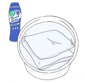 衣類のウイルス除去は、衣料用漂白剤を使ってつけおき洗いをした後、いつものように洗濯しましょう。