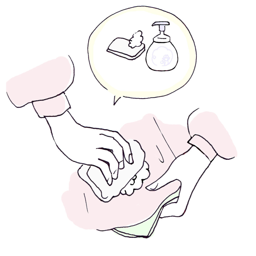 4.少量の水で湿らせたティッシュペーパーにハンドソープや石けんをつけて、シミになじませる