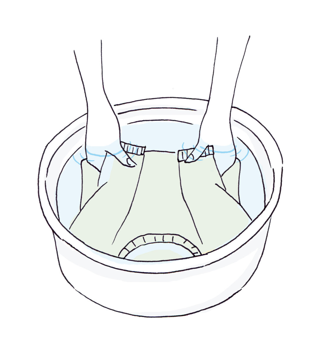 4.洗い桶の中で、汚れている部分をもむようにして洗う