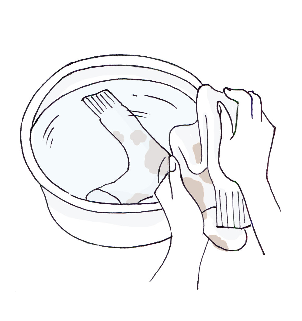 汚れがひどいものや、色移りしやすいもの、洗濯機で洗えないものは手洗いをします。押し洗い・振り洗い・つまみ洗い等、衣類によって向いている洗い方を確認しましょう。