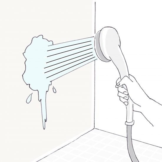 入浴後、壁や床を中心に、お湯をかけて汚れを洗い流します。その後、シャワーを水にして、浴室全体の温度を下げておくと、カビの発生を防げます。