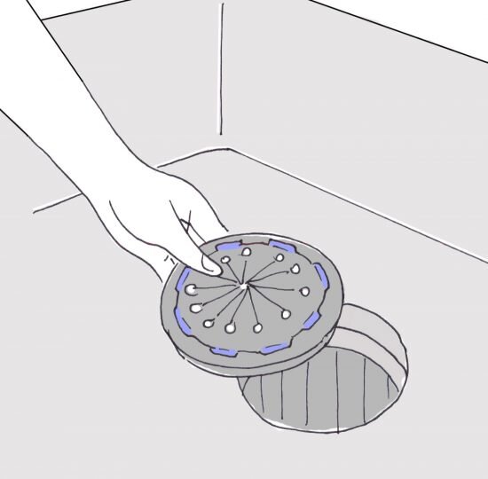 掃除のすんだ排水口に、台所用排水口ヌメリとり剤を排水口に設置