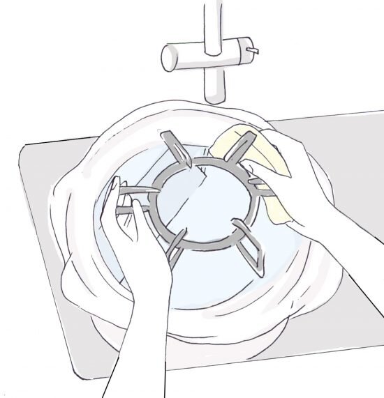 1.取り外した五徳や受け皿をシンクに置く