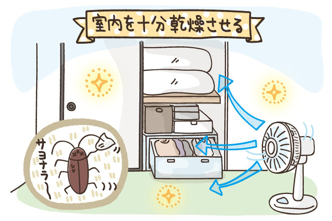 扇風機で室内を十分に乾燥させる