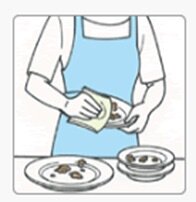- 食べ残しや、油、ソースなどは、キッチンペーパーなどでふきとる