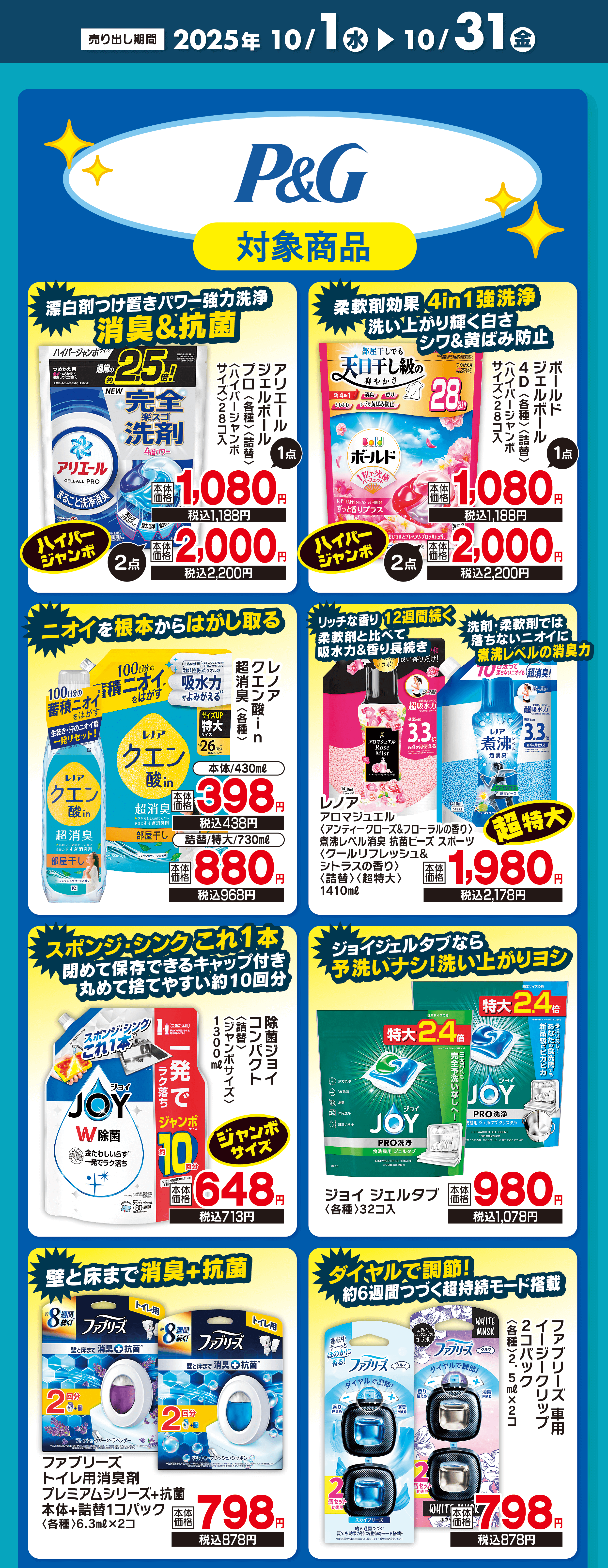 ※化粧品、P&G日本法人が扱っていないダウニーなどの並行輸入品、ブラウンオーラルB以外のブラウン商品は対象外です。※一部店舗にてお取り扱いのない場合があります。