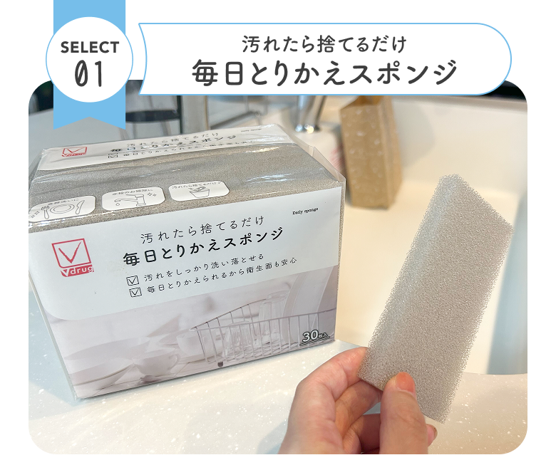 ギトギト汚れスポンジの使い回し回避に。すぐに取り替えられて衛生的!シンクリセットに使ってそのままポイッ!30枚入で、泡立ちもコスパも◎