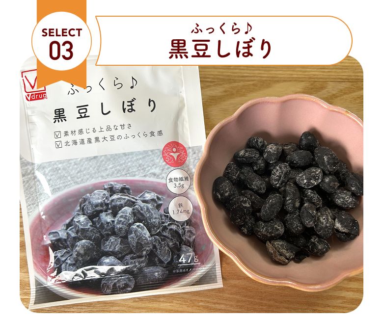 北海道産黒大豆を使用した、黒豆本来の味を感じられる一品です。ふっくらとした黒豆と上品な甘さがあと引くおいしさ。鉄分や食物繊維が豊富です。