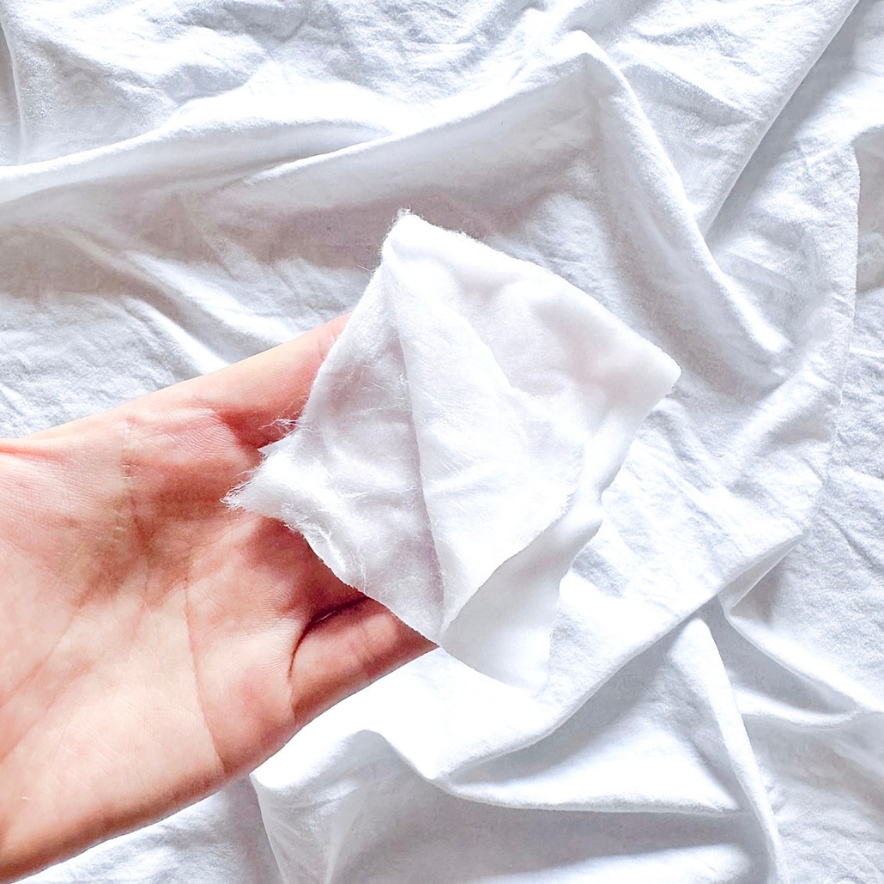 天然コットンを100%使用し、接着剤を使わず水で編み上げているので、ふんわりやさしい肌あたり。